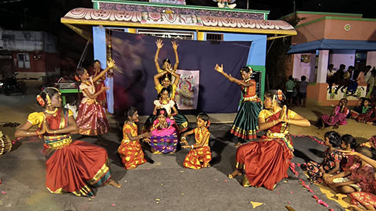 At Ramanathapuram, in partnership with Voluntary Association for Peoples Service (VAPS), the morning performance at Thinaikulam Government High School introduced many to Kattaikkuttu and Bharatanatyam for the first time. The session featured a dynamic portrayal of gender roles, encouraging open dialogue among students and teachers about financial independence and educational opportunities for girls. There was also a discussion on the harmful impacts of alcohol on people's minds and bodies.