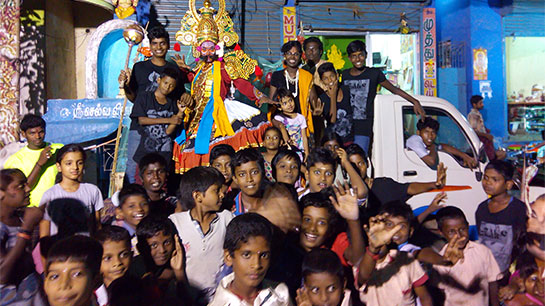 The performance opened up strong discussions on how the boys see themselves, what they need to learn and what they want for their future. During our sessions the boys realised they wanted to talk about substance abuse - something which has affected them deeply. They created a performance out of their experiences and stories using Kattaikkuttu as the theatrical medium. The sets were built on a small lorry and the boys performed with a team of Kattaikkuttu artists through Korukkupet and Ennore.